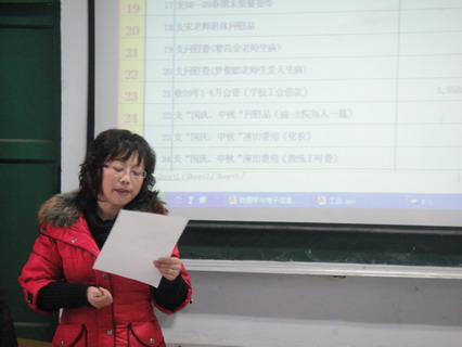 2009年12月14日下午4时,新葡萄8883官网分工会第三届第一次教代会在院多媒体教室顺利举行,会议由分工会委员兰华主持。会议首先听取了经理蔡达锋同志的工作报告,接着分工会主席张白珊同志、分工会委员陈德玉同志分别做了本年度工会工作报告和工会财务工作报告;并对有关慰问费的相关规定进行了修订。在对本年度工会开展工作评议过程中,工会会员们一致认为本届工会委员会在以人为本、加强民主管理、维护教职工利益、促进自身建设等方面做了大量的工作,获得了全体会员的好评。